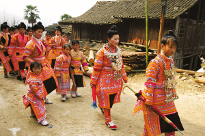對角花苗族主要分布在貴州的榕江和黎平兩縣,但黎平縣僅有一個數(shù)十戶人家的小寨子屬于這個支系,榕江則有高邦、兩夫、高略、卡寨等8個村寨,約1萬人口。
