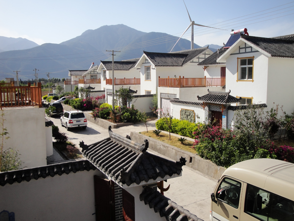 ?、扇恳徽毡诹餍杏谠颇洗罄砦∩降鹊匾蛥^(qū)。主房順山勢依山而建,兩側(cè)耳房較低,再加一照壁,為土木結(jié)構(gòu)的組合建筑。多數(shù)為草房,少數(shù)為瓦房,有帶廈和不帶廈兩種。房形有實心房、空心房;吊廈、鸚哥房用木板搭成踩樓。主房高于耳房,主次分明,布局協(xié)調(diào)。前面垂檐,形成前出廊的格局,以一排柱子為主的屋架承重,四柱落地,左右后三方用土基墻圍護,前面及中央用木板為隔。主房山墻到頂,屋面挑出。