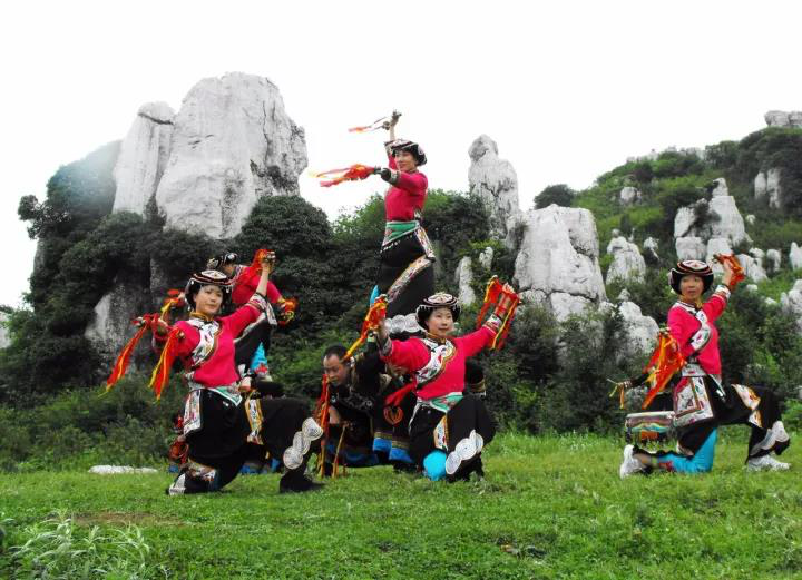 彝族“鈴鐺舞”跟彝族其他舞蹈最為顯著的共同特征是在舞蹈中,靜態(tài)造型多,動態(tài)造型少,腳下的動作多,手臂造型少,且鋼勁有力。