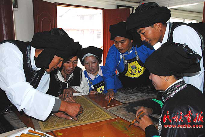 以前很長一段時間,沒幾個人留意過阿峨新寨村的繡花技藝。然而,有一次,縣里組織文化館的專家到峨新寨采風(fēng),老師們發(fā)現(xiàn)村民們的這門技藝后非常高興,于是,就發(fā)動村民在阿峨新寨村搞起了版畫,這使阿峨農(nóng)民版畫逐漸發(fā)展壯大。1966年,村里的群眾投工投勞蓋起了一幢一樓一底土木結(jié)構(gòu)的文化活動室,組織文藝演出、開展繪畫活動、圖書閱覽、電影放映、籃球比賽等活動。以前,村民們有事沒事就聚在一起打牌、喝酒、猜拳,精神文化生活比較單調(diào),就連圖書室里的報刊、圖書也成了擺設(shè),無人光顧。 但自從村里搞起版畫事業(yè)后,阿峨新寨村的面貌發(fā)生了翻天覆地的變化?!艾F(xiàn)在的阿峨新寨,處處都是新氣象,版畫成為整個寨子的一項(xiàng)重要經(jīng)濟(jì)來源,人均純收入已翻了一番,村民的日子也越過越紅火。”阿峨新寨村黨支書龍子定說。“現(xiàn)如今我們徹底甩掉了貧困村的帽子?!?盧正林滿臉笑容地說:“我們版畫村能有今天的成就,離不開好政策?!?/p>