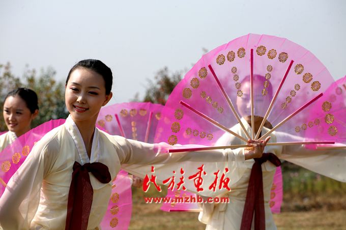 十月的延邊碧空如洗,大地歡歌;十月的山村層林盡染,稻谷飄香。這是農(nóng)民們最為向往的季節(jié),耀眼的陽光給剛剛收獲過的土地鑲上了一層迷人的金邊,累累碩果被婦女們輕快地端上了餐桌。在寬闊的體育場上,彩球升騰、人聲鼎沸,一場盛大的慶祝活動—農(nóng)樂舞表演即將拉開序幕……