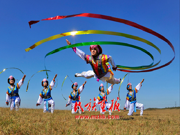 你可別小瞧了這拖著長長“象尾”的“象帽”,要想把它們成功地甩起來,那需要高超的技巧,未經(jīng)訓(xùn)練的人是無論如何也玩兒不轉(zhuǎn)的。早在1988年,延邊州汪清縣百草溝鎮(zhèn)就被文化部命名為“中國朝鮮族象帽舞之鄉(xiāng)”。在那里,會跳象帽舞的農(nóng)民成百上千,他們扛著鋤頭是一群普普通通的農(nóng)民,甩起“象帽”就變成一個個技藝超群的演員!如今的象帽舞由農(nóng)村“舞”到城市,從國內(nèi)“甩”到國際,站到了更高的藝術(shù)舞臺上,為朝鮮族贏得了眾多的贊譽!