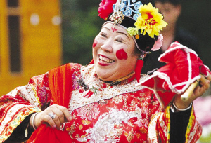金秋時節(jié),老人們跳起滿族秧歌慶祝豐收。 資料圖片