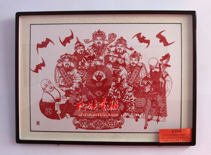 豐寧剪紙中源于中國(guó)神話的《五財(cái)神》,寄寓著對(duì)大富大貴生活的憧憬