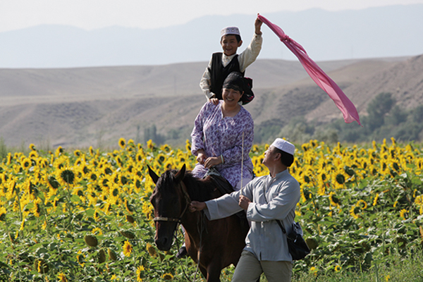 相比于《德吉德》中對蒙古人性情的原生態(tài)展現(xiàn),《伊犁河》似乎在民族特征上不那么突出。依賴故鄉(xiāng)的母親、向往城市的兒子、生活的變遷與成長的感悟,在世俗每個(gè)角落里的家庭中都上演著、發(fā)酵著。這種普世的、共性的情感,無關(guān)民族,無關(guān)地域。導(dǎo)演用伊犁的村莊和上海這個(gè)現(xiàn)代化都市之間的落差,詮釋著親情與文化。影片的結(jié)局無疑做出了選擇,無論城市的人群多么川流不息,也比不上童年在故鄉(xiāng)與親人的耳鬢廝磨。