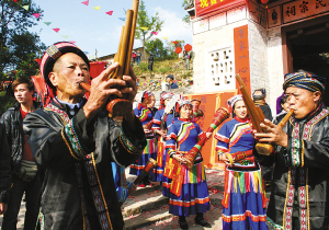 全村男女老幼穿上自己民族的節(jié)日盛裝,通過祭盤王開壇,還盤王愿,唱起召兵歌、打起召兵鼓,表演民間絕技,...