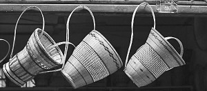 土家人的背簍各式各樣,有編織考究、圖案新穎的,有表面粗糙、實則堅牢的;有茶背簍、板背簍、粗背簍、扁背簍、腳背簍、大斗背、三斗背……我曾想,土家人用別的運(yùn)輸工具行不?如果說開汽車條件不具備,那么騾馬牛車、板車和雞公車行不?有的地方行,有的地方則不行??傊?,什么地方也不如背背簍靈活便當(dāng)!這實在是土家人在勞動實踐中的創(chuàng)造發(fā)明??!