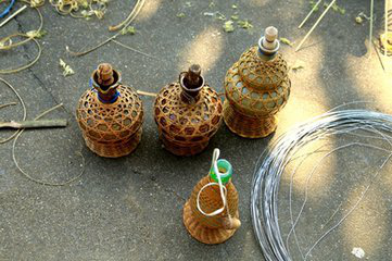傣族竹編歷史悠久,制作精美,品種豐富,它與傣族人家生活息息相關(guān),是了解傣族文化不能缺少的一部分。對于傣族竹編來講,以編織工藝不同,可以把傣族竹編分為薄篾層編織出平面圖形的平面竹編;用橫截面為矩形的竹絲編織立體造型的立體竹編;將平面竹編和立體竹編編織工藝糅合在一起,編制成既有平面質(zhì)感又有立體形狀的混合竹編。傣族竹編是藝術(shù)創(chuàng)作和藝術(shù)再創(chuàng)作,竹編工藝品可分為粗絲工藝品和細(xì)絲工藝品。粗絲竹編工藝品主要有茶杯、糖缸、飯盒、檳榔盒、茶葉罐等,細(xì)絲竹編工藝品主要有竹包手袋、挎包和帽子等,它們集實(shí)用和觀賞性于一體。例如傣族的“芭蘿”,“芭蘿”是傣族,是一種掛在腰間的竹簍?!鞍盘}”編織精巧,美觀實(shí)用,不僅是生產(chǎn)、生活用具,還是精致的裝飾品,還是傣族青年表達(dá)愛情的傳遞物。