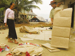 覺(jué)悟的菩提樹(shù)下,是橙色的佛寺,小和尚攤開(kāi)構(gòu)紙抄寫(xiě)的經(jīng)書(shū),輕輕誦讀,構(gòu)樹(shù)婆娑,掛滿鳥(niǎo)語(yǔ)。