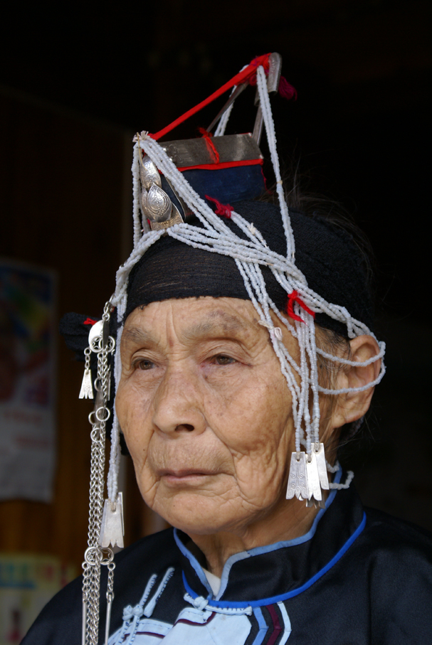畬族婦女喜留長發(fā),少女將頭發(fā)與紅色絨線摻在一起編成辮子,盤繞在頭頂,前留若干劉海,不使用飾物,若是兩鬢夾有銀釵兩支,則需要在訂婚后脫下一邊,表示許親。羅源或福安地區(qū)的已婚畬族婦女則梳螺式或截筒高帽式發(fā)髻,頭飾高高隆起,形絲鳳頭,被稱作“鳳凰髻”;閩西南一帶畬族的成年婦女多梳“龍船髻”,將發(fā)辮以藍(lán)或黑色頭繩纏繞成發(fā)髻,以銀簪或竹簽固定于頭頂,夏天出門時,發(fā)髻還有固定“涼笠”的作用;浙江畬族婦女多將頭發(fā)梳成單辮后在腦后打成發(fā)髻,辮腳以黑色縐紗纏繞,頭頂置一紅布包裹的銀制或竹制發(fā)筒,縐紗綴有紅黑相間的料珠串,另有8條尾端結(jié)有小銀牌的料珠串垂落兩耳側(cè),勞動時則覆以藍(lán)色方巾或毛巾。按照傳統(tǒng),畬族婦女結(jié)婚之日必戴鳳冠,去世時則戴著鳳冠入土,鳳冠為一根細(xì)小精致的竹管,外面包裹紅布,下方懸著一尺長、一寸寬的紅綾,冠上飾以圓銀牌,銀牌上懸掛三塊小銀牌,可垂于額前。