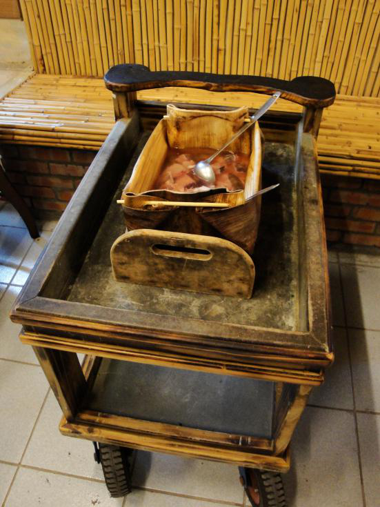 阿美人有一種美味的麥飯石火鍋,將燒得滾燙的麥飯石投入盛有魚、肉、菜等的竹筒或檳榔鞘殼中,利用石塊的溫度將食物燙熟后食用,味道鮮美且極富營養(yǎng),且阿美人會(huì)煎炒、油炸。