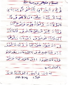 “小經(jīng)”作為一種拼寫文字形成之后,在經(jīng)堂中曾出現(xiàn)過“阿文小經(jīng)文字對(duì)照表”,不僅經(jīng)堂學(xué)員用“小經(jīng)”來注釋經(jīng)文或作筆記,一些阿訇也以之翻譯某些經(jīng)文或進(jìn)行著述。在部分回族穆斯林中,它也曾被用作寫書信、記日記或記事的應(yīng)用文字。因有些漢語語詞極難拼準(zhǔn),故行文中常夾雜一些阿拉伯文或波斯文的原詞,也有夾雜個(gè)別漢字。
