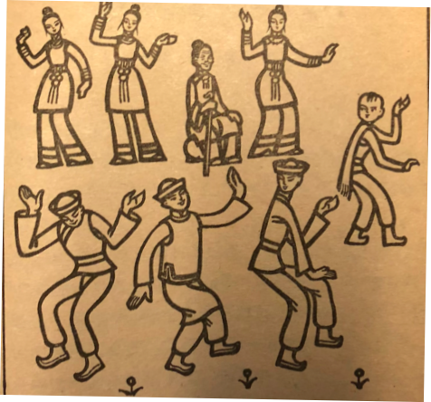 木頭二哥兩條長腿走得真快,一天真打個(gè)來回,把阿奶背來了。阿奶抱住黑馬張三,樂得流出了眼淚,看看兒子,有吃有穿。有這么個(gè)好媳婦,還找到了這么幾個(gè)好心弟兄,心里真像開了花一樣。