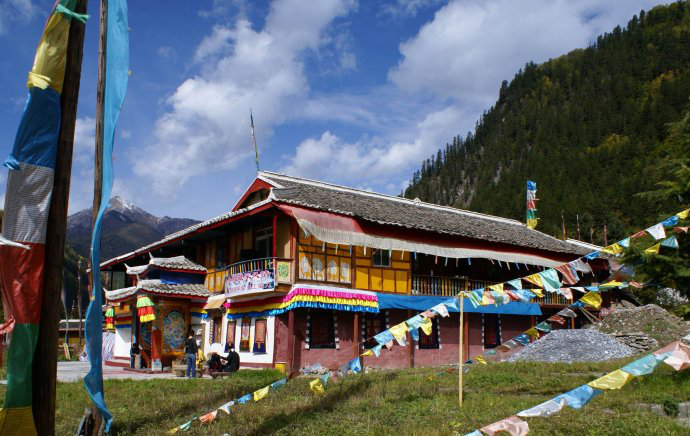九寨溝里九個古老的藏族村寨,到處有石磨房、棧道、經(jīng)幡和藏羌歌舞等,藏族特色濃郁而神秘。原始古樸的村寨散落在綠樹環(huán)抱的群山之中,顯得更加古老、寧靜。九寨溝,平均海拔在2500米左右,屬于寒溫帶地區(qū),所以冬無嚴寒,夏無酷暑,在這里的傳統(tǒng)的建筑大都為木結構。