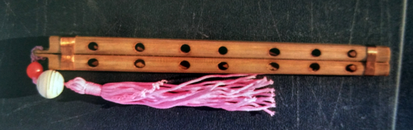 羌笛是一種吹管樂器,歷史悠久。羌笛至今已有兩千余年歷史。據(jù)史載,西漢前,羌笛面上有四孔,公元一世紀由京房加一高音按孔,為五孔。東漢馬融在《長笛賦》就曾有“近世雙笛從羌起”的記述,唐代亦有“羌笛何須怨楊柳”的名句。發(fā)展到近代羌笛已成六孔。2006年5月“羌笛演奏及制作技藝”被列入《第一批國家級非物質文化遺產目錄》。羌笛在羌語中稱為“其篥”“士布里”或是“幫”,是一種古老的民間豎吹樂器。它由兩根長約15—20厘米,直徑1厘米左右,筒孔大小一致的竹管并在一起,用絲線纏繞,管頭插著竹簧。管身竹制或骨制,由發(fā)音簧哨和方筒形管體組成。兩管長短、孔距和音高相同。管上設五個或六個按孔。演奏時,雙手持笛,將簧哨含入口內,用特殊的“鼓腮換氣法”吹奏,指法與笛相同。制作羌笛一般選用箭竹,并根據(jù)筒管的長短、厚薄及筒管大小測定音準,孔距必須精確相等,否則音準不一。
