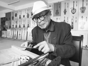 4月里一個(gè)春光明媚的日子,在新疆察布查爾錫伯自治縣老干局的一間活動(dòng)室里,年已古稀的錫伯族老人何伊爾·何曉正在打磨木料,他的神情專注而認(rèn)真。在他身后的墻上,掛著30多把由他親手設(shè)計(jì)、制作的形狀各異的東布爾。而這間十幾平方米的活動(dòng)室儼然成了一個(gè)小型的東布爾展廳,各種有關(guān)東布爾的文字介紹、圖片展示一應(yīng)俱全。
