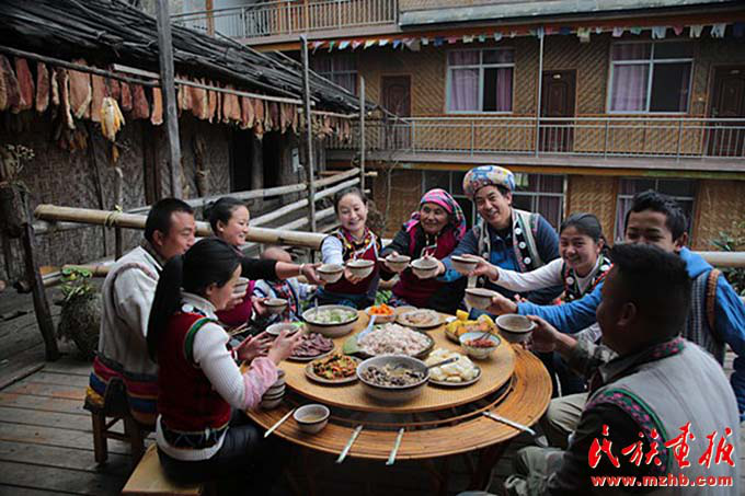 早上,老姆登村73歲的怒族老人斯普早早起來(lái)招呼兒子郁伍林、兒媳魯春花:“春節(jié)快放假了,客棧的生意會(huì)忙得不可開交,趁著現(xiàn)在客人不多,家里人先吃一頓團(tuán)圓飯吧。”斯普老伴早年過世,7個(gè)兒女中老五郁伍林在身邊照顧她?!斑^去在春節(jié)才能吃上一頓好飯菜,也要準(zhǔn)備很長(zhǎng)時(shí)間,現(xiàn)在每天都有好吃的,天天在過年,多虧了黨的好政策?!闭f(shuō)起今天的幸福生活,生在舊社會(huì)的斯普感慨萬(wàn)千。
