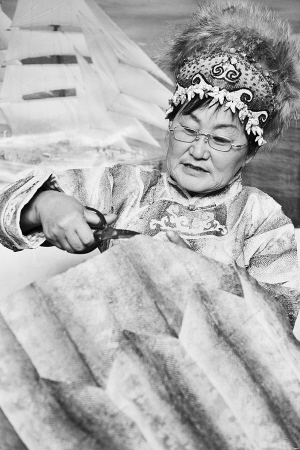 2006年,尤文鳳被授予“國家級非物質(zhì)文化遺產(chǎn)項(xiàng)目赫哲族魚皮制作技藝傳承人”稱號。尤文鳳說:“前一陣搜集到一本中國早期人類學(xué)家林春生寫的《松花江下的赫哲族》。按照書里所記載的,現(xiàn)在我正在全力恢復(fù)古老的魚皮衣樣式,從款式到花紋都要原封不動(dòng)地繼承下來?!?/p>