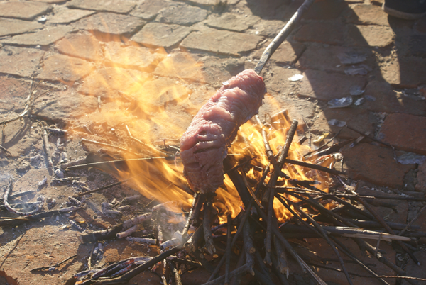 在漁獵經(jīng)濟時代,獸肉也是赫哲族人民日常食物的重要組成部分。狍子、野豬、鹿、熊是赫哲族主要的獵取獵物,這些獵物是赫哲族肉食的主要來源。獸肉除燉著吃、烤著吃以外,還可以曬成肉干儲存起來,以備日后食用。