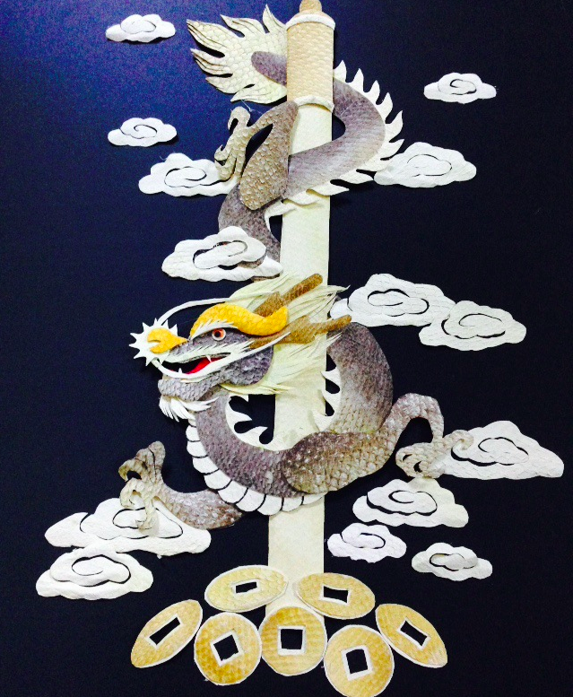 制作魚(yú)皮畫(huà),首先必須對(duì)魚(yú)皮進(jìn)行加工處理。手工費(fèi)時(shí)大約3天,要經(jīng)過(guò)剝制,晾干去鱗、晾曬魚(yú)皮、捶熟、漂色等許多細(xì)致環(huán)節(jié)。魚(yú)皮畫(huà)分為粘貼和鏤刻兩種。粘貼畫(huà)制作相對(duì)來(lái)說(shuō)較為容易,先勾勒出初稿,然后選好底襯,再選適當(dāng)?shù)聂~(yú)皮進(jìn)行剪制。這一步驟特別重要,首先要確定要粘貼的部位,來(lái)選則魚(yú)皮的顏色,剪完之后,就可往底紙進(jìn)行粘貼了,一幅魚(yú)皮畫(huà)也就完成了。內(nèi)容一般生活方面的事物,還有動(dòng)物、人物等等。魚(yú)皮鏤刻是先選好魚(yú)皮,一般都是選擇比較大的魚(yú)皮,有陰刻和陽(yáng)刻兩種,在魚(yú)皮的反面進(jìn)行勾畫(huà)(也可直接剪制 ) 經(jīng)過(guò)剪刻完成。