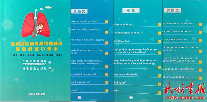 德宏民族出版社出版的《新型冠狀病毒感染的肺炎健康科普小知識(shí)》(漢傣、漢景、漢傈等對照)5000冊將免費(fèi)發(fā)放至全州各鄉(xiāng)鎮(zhèn)和邊境一線窗口單位。