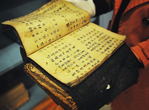 現(xiàn)在,莫炳剛除了參與“儺祭”活動(dòng)外,還經(jīng)常到縣城的布依族古文字研究基地,用布依語(yǔ)來(lái)解釋儺書中的布依古文字,然后,由既懂布依語(yǔ)又懂漢語(yǔ)的人翻譯成漢語(yǔ),再由懂國(guó)際音標(biāo)的人給這些古字注音。