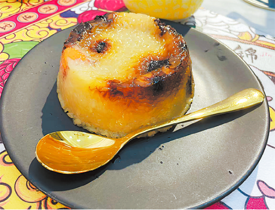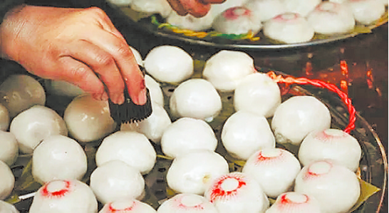 齋是將紅糖味的熟糯米包入糯米漿制成的皮里,口感香糯有韌性。除了蒸熟后直接食用,齋還有一種特殊的吃法:將其對(duì)半切后,用油稍微煎過(guò)再加紅糖水,煮成一碗甜香四溢的紅糖齋。
