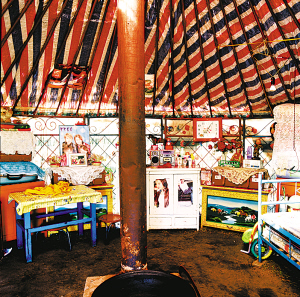 內(nèi)蒙古自治區(qū)鄂溫克族自治旗南輝蘇木牧場(chǎng)氈房?jī)?nèi)的擺設(shè)