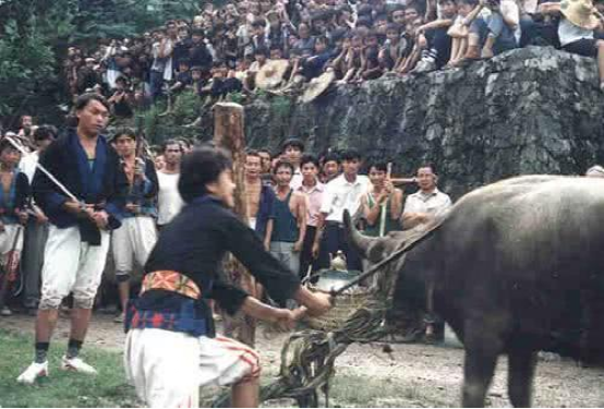 砍牛、打銅鼓是白褲瑤為死者舉行葬禮的儀式,整個葬禮悲壯、肅穆,祭祀場面氣氛凝重莊嚴,這種傳統(tǒng)送喪習(xí)俗,既是表達遺屬對死者的悼念,也是一項眾人共同的祭祖活動,銅鼓、皮鼓,是葬禮活動的主要打擊樂器。
