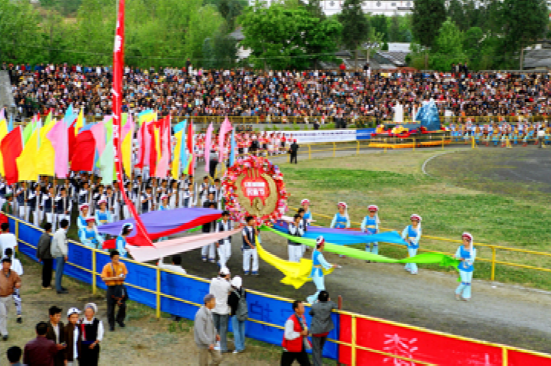 三月街又名“觀音市”,是云南白族盛大的節(jié)日和街期。每年夏歷三月十五至二十日在大理城西的點(diǎn)蒼山腳下舉行。最初它帶有宗教活動色彩,后來逐漸變?yōu)橐粋€盛大的物資交流會。明清時(shí)期,四川、西藏、江南各省都有商人到此貿(mào)易。它不僅是個交換場所,還是表演各種舞蹈和賽馬、競技的樂園。中華人民共和國成立后,三月街已發(fā)展成滇西各族人民一年一度繁榮的物資交流和民族體育文藝大會,對加強(qiáng)民族團(tuán)結(jié)、促進(jìn)民族間的經(jīng)濟(jì)文化交流,起了積極的作用。