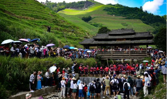 7月15日,農(nóng)歷六月初六,是廣西龍勝金坑瑤寨的傳統(tǒng)節(jié)日“曬衣節(jié)”,當?shù)丶t瑤同胞舉行了豐富多彩的民俗文化活動進行慶祝。
