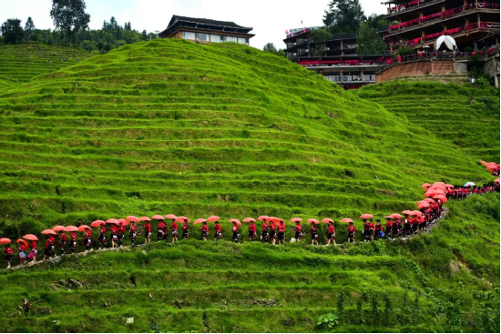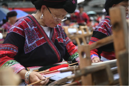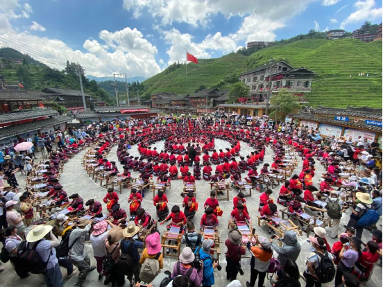 2014年,龍勝瑤族服飾(紅瑤服飾)以其精湛的手工藝和文化底蘊入選國家級非物質(zhì)文化遺產(chǎn)代表性項目名錄擴展項目名錄。如今的“曬衣節(jié)”已不僅是紅瑤的傳統(tǒng)佳節(jié),“農(nóng)歷六月六,廣西龍脊看紅衣”等曬衣節(jié)系列活動已成為桂林山水游的一張名片,讓各地游客充分感受多姿多彩的民族風情。紅瑤同胞們用自己獨特的方式,為中國共產(chǎn)黨成立100周年獻上自己的祝福。