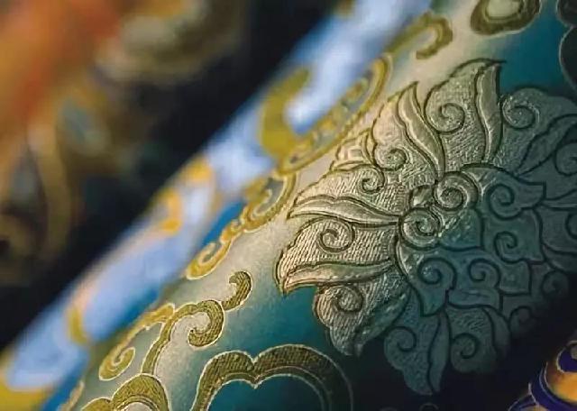 民族錦一般采用多色彩條嵌入金銀絲織成,多用于民族服飾,故名。其特點(diǎn)是錦面上的圖案從經(jīng)緯線交織中顯現(xiàn)出自然光彩,富有光澤。常見(jiàn)的圖案有團(tuán)花、葵花、“萬(wàn)”字“壽”字等。彩暈錦的特點(diǎn)是織紋華貴相映,明暗匹配,層次分明,并以色暈過(guò)渡,花紋絢麗多彩,別具一格。