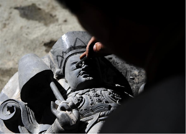 伴隨著收音機(jī)傳出的旋律,西藏自治區(qū)級(jí)黑玉石雕刻技藝非物質(zhì)文化遺產(chǎn)傳承人土登加措和他的徒弟們開始了又一天的黑玉石佛像雕刻工作。黑玉石產(chǎn)生于海拔4500米以上的石山上,是高原特有的一種石材。據(jù)古書記載,西藏第一代藏王聶赤贊普曾將天降的經(jīng)書、塔模等佛教圣物封存于洞中,并以黑玉石雕刻佛塔做蓋,于是便有了西藏歷史上有記載的第一件黑玉石雕刻作品。作為這門技藝的第五代傳人,土登加措延續(xù)著家族的技藝,一直傳承著這門古老的技藝。西藏黑玉石雕刻技藝在2012年入選第四批西藏自治區(qū)級(jí)非物質(zhì)文化遺產(chǎn)名錄,土登加措如今已有近30名弟子,古老的黑玉石雕刻技藝正在慢慢走向世界。新華社記者 晉美多吉 攝