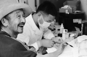 中央民族大學(xué)藥學(xué)院師生為北京市懷柔區(qū)老溝門村村民開展義診活動。