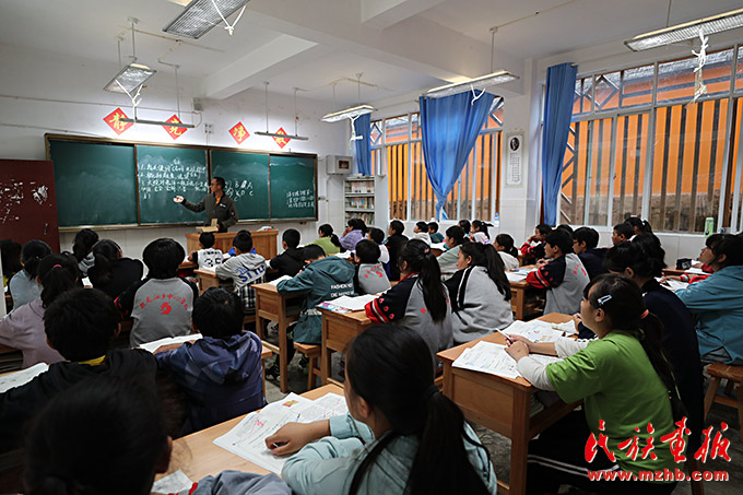 “對(duì)于一個(gè)在北平住慣的人,像我,冬天要是不刮大風(fēng),便覺得是奇跡;濟(jì)南的冬天是沒有風(fēng)聲的?!弊哌M(jìn)學(xué)校初中部,朗朗書聲立即傳入耳中,七年級(jí)一班學(xué)生正在老師的帶領(lǐng)下大聲朗讀我國(guó)著名作家、劇作家、小說(shuō)家老舍創(chuàng)作的散文《濟(jì)南的冬天》。獨(dú)龍江九年一貫制學(xué)校校長(zhǎng)楊四洋對(duì)記者說(shuō):“習(xí)近平總書記曾深刻指出:少數(shù)民族學(xué)好國(guó)家通用語(yǔ)言,對(duì)就業(yè)、接受現(xiàn)代科學(xué)文化知識(shí)、融入社會(huì)都有利。所以我們學(xué)校從成立之初就開始推行國(guó)家通用語(yǔ)言文字教育,如今每一個(gè)在校學(xué)生都能講出一口流利的普通話。獨(dú)龍族聚居地地處深山峽谷,自然環(huán)境惡劣。學(xué)好國(guó)家通用語(yǔ)言文字對(duì)我們的孩子尤為重要,這樣才能更好地建立與外界溝通的橋梁?!?/p>