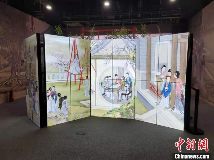 故宮《石渠寶笈》繪畫(huà)數(shù)字科技展的“展卷”區(qū)展出的繪畫(huà)作品,是經(jīng)過(guò)故宮博物院專家、文化藝術(shù)學(xué)者共同研究探討,甄選出《石渠寶笈》中數(shù)十幅最具代表性書(shū)畫(huà)作品,以1:1的比例還原仿制,展示中國(guó)古代書(shū)畫(huà)作品精粹,讓民眾在家門(mén)口即可享受到科技、文化、藝術(shù)相融合的展覽。