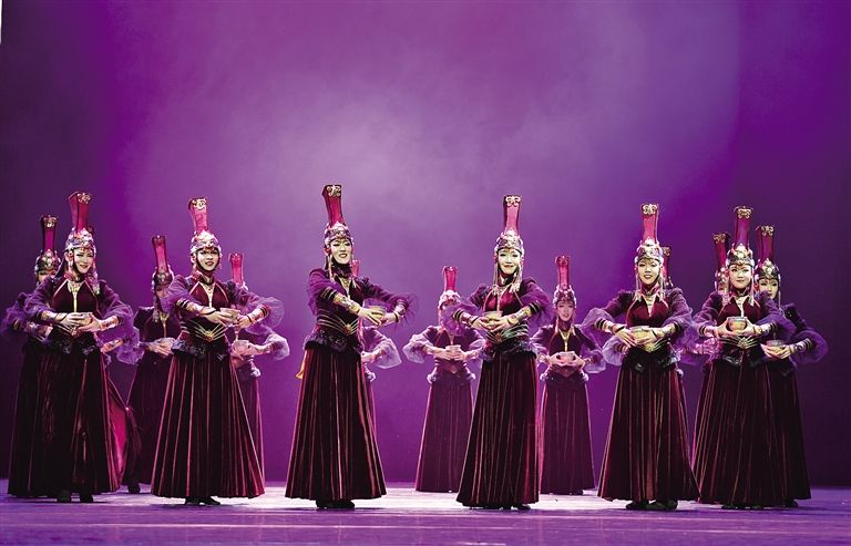 蒙古舞由民間走向劇場,始于1946年吳曉邦先生創(chuàng)作女子雙人舞《希望》和群舞《民族之路》。賈作光則將蒙古舞的發(fā)展推向高潮。深入草原,體驗(yàn)游牧生活,賈作光不斷挖掘和整理傳統(tǒng)文化資源,蒙古族舞蹈經(jīng)典相繼問世——遼闊的草原上,一位身著傳統(tǒng)民族長服的女子頭頂疊碗,雙手持盅,英姿妖嬈款款起舞,動人的《盅碗舞》渲染出牧民迎來新生活的喜悅和歡樂;提煉宗教舞蹈精華,提取擠奶、射箭等生活動態(tài)元素,蒙古族干練灑脫的民族氣質(zhì)在《鄂爾多斯舞》中盡顯……