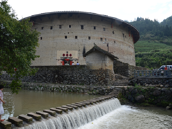 福建土樓所在的閩西南山區(qū),正是福佬與客家民系的交匯處,地勢險峻,人煙稀少,一度野獸出沒,盜匪四起。聚族而居既是根深蒂固的中原儒家傳統(tǒng)觀念要求,更是聚集力量、共御外敵的現(xiàn)實需要使然。福建土樓依山就勢,布局合理,吸收了中國傳統(tǒng)建筑規(guī)劃的“風水”理念,適應(yīng)聚族而居的生活和防御的要求,巧妙地利用了山間狹小的平地和當?shù)氐纳痢⒛静?、鵝卵石等建筑材料,是一種自成體系,具有節(jié)約、堅固、防御性強特點,又極富美感的生土高層建筑類型。這些獨一無二的山區(qū)民居建筑,將源遠流長的生土夯筑技術(shù)推向極致。