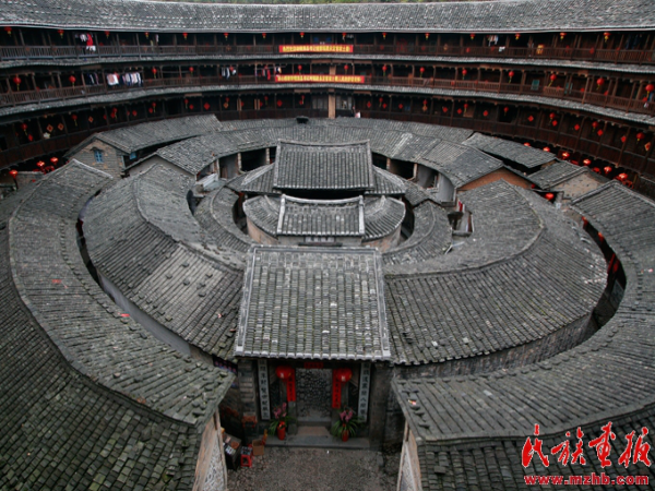 歷經(jīng)風(fēng)雨,至今屹立在“南嶺走廊”崇山峻嶺中的土樓以及土樓里“大家庭、小社會(huì)”的社區(qū)組織就是這一文化的重要標(biāo)志。有人說(shuō),土樓是客家人從南方高山密林向中原故地深情回望的眼眸,是客家人對(duì)客居地激情擁抱的臂膀,寄托著客家人所有的光榮與夢(mèng)想。