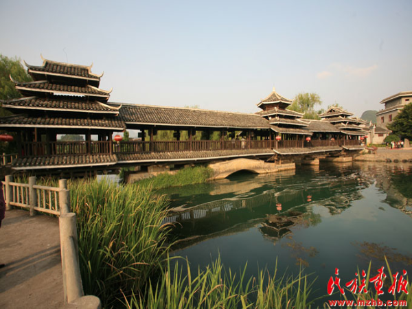 據(jù)有關(guān)史料考證,唐宋時期,借鑒中原營造橋梁的技術(shù)和南方建造干欄式建筑的經(jīng)驗,侗族先民利用當(dāng)?shù)刎S富的林木資源,開始用托架簡梁式結(jié)構(gòu)修造起木橋。為適應(yīng)南方多雨的氣候,橋上還修建了長廊以躲避風(fēng)雨。后來,橋的規(guī)模越來越大,由單孔發(fā)展為多孔,造型更精彩,橋面亭閣的構(gòu)思設(shè)計更加精巧。