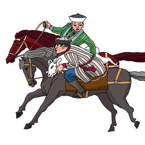 柯爾克孜族(馬上角力):柯爾克孜族有141549人,聚居在新疆克孜勒蘇柯爾克孜自治州??聽柨俗巫逯饕w育項(xiàng)目有賽馬、刁羊、摔跤、馬上角力、跑馬拾銀元、跑馬射元寶、月下尋物等。