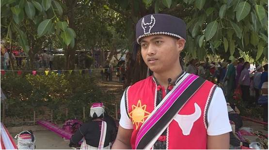 翁嘎科魏明介紹:“佤族男服飾以黑或者與紅、黑白、黑紅為搭配,女服飾裙子是純手工藝以黑白、黑紅為主基調, 頭飾是用銀白色的頭飾進行裝飾,裹著一層類似于項鏈一樣的飾品,最原始的頭飾還是用黑布裹起來的,演變到現(xiàn)在的話還需要做一些裝飾?!?/p>