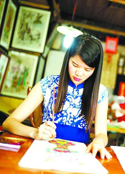 復(fù)業(yè)后,年畫鋪的生意和馮炳棠的生活一樣平平淡淡。直到2014年,一位活潑開朗的姑娘的到來,百年老鋪煥發(fā)了新的活力。這位姑娘正是劉鐘萍。