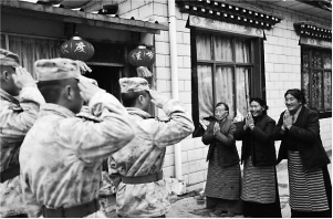高原的冬季漫長(zhǎng)而寒冷,突發(fā)暴雪,官兵主動(dòng)幫助地方清理積雪,保障交通;遇到困難群眾,基層戰(zhàn)士慷慨解囊,堅(jiān)持資助達(dá)數(shù)年之久。官兵們的真誠(chéng)幫助,換來(lái)了駐地群眾的真心擁戴。