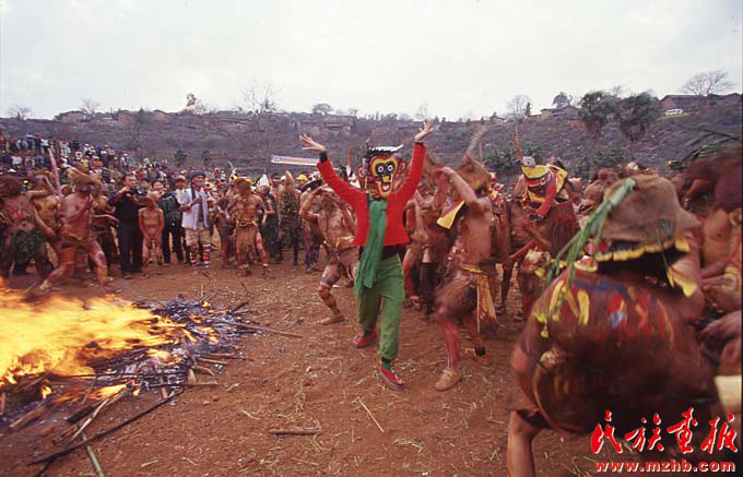 2000年后,楊麗萍將更多的精力投入到云南民族文化的挖掘整理中。圖為她在彝族祭火現(xiàn)場參與表演(民族畫報資料)