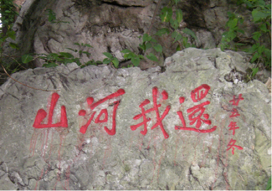 冠山,位于貴州龍里冠山盆地(縣城)東隅,巖山形似金鐘撲地,古木參天,蔥郁蒼翠。明永樂七年(1409)始建的道教活動場所掩蔽其中,可謂“山不在高有仙則名”。在歷史的長河中,雖然道教一去不復(fù)返,但其紫虛觀主體建筑保存尚好,現(xiàn)列為省級文物保護單位,由主體建筑紫虛閣、左右?guī)?、前殿、山門、文昌祠組成二進院式古建筑群。主體建筑為木構(gòu)穿斗式三重檐六角攢尖筒瓦頂,1989年遷入的文昌祠,為木構(gòu)抬梁式歇山青瓦頂,帶吻正脊,戧脊翹角卷草,石質(zhì)柱礎(chǔ)浮雕仙草、竹、梅、鹿等圖案。西南兩面有1936年題刻的“還我河山”、“巨靈一孹”等七方摩崖石刻。建筑物的形制、布局給人一種古樸、滄桑之感。登閣騁目,遠山峻嶺和鱗次櫛比的樓房盡收眼底,讓人流連忘返。