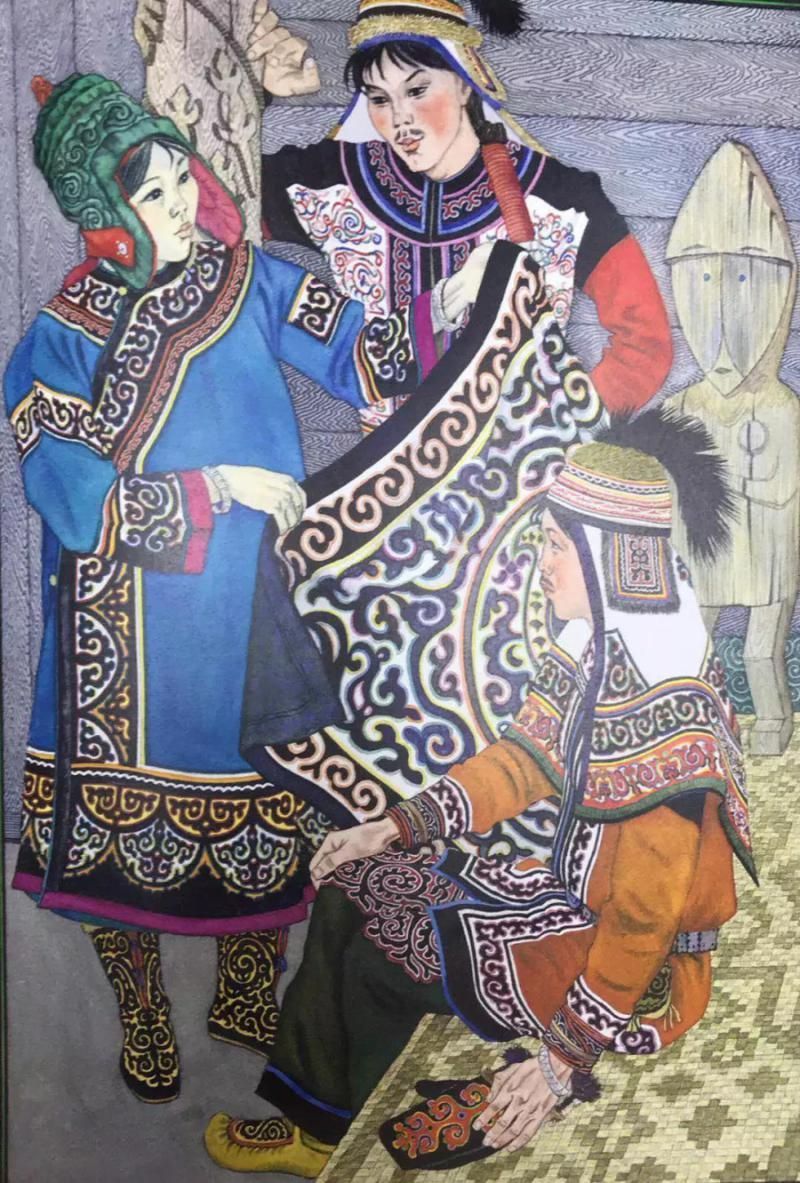 赫哲族和那乃族的婚服也稱“樹服”,樹服對赫哲族和那乃族的婦女有著非凡的意義,女子在結(jié)婚時穿一次,在生命結(jié)束時穿一次,因此有著“樹服一件托生死”的說法。