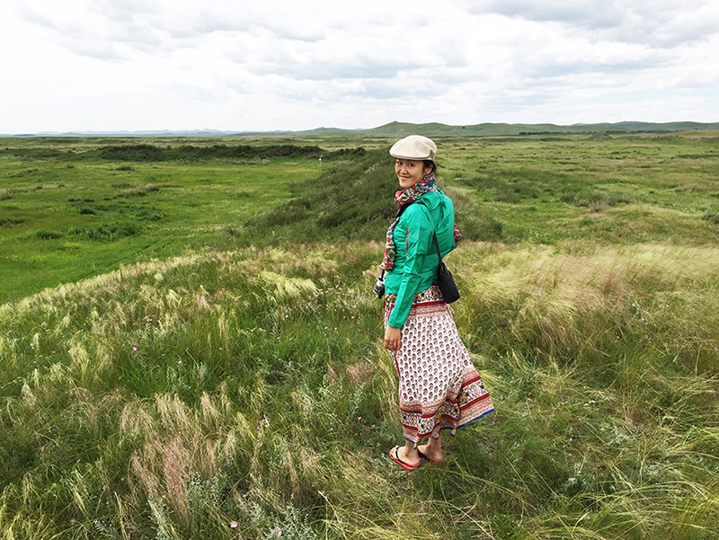 本文作者林秀靜在草原上