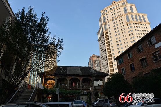 在中華北路主大街中段,穿過一個(gè)百米左右的小巷子,沿著一個(gè)小斜坡往上,盡頭一個(gè)寬敞的大院子就是“毛公館”。但是比起貴陽(yáng)現(xiàn)存的其他民國(guó)建筑,“毛公館”顯得殘破不堪。如今的大院已看不出任何歷史文化古跡的痕跡,“毛公館”周邊已經(jīng)被兩個(gè)小高層建筑包圍,大院邊是一棟富麗堂皇的銀行辦公大樓和一棟證券大樓,相比起來,“毛公館”的存在顯得與這個(gè)城市格格不入。